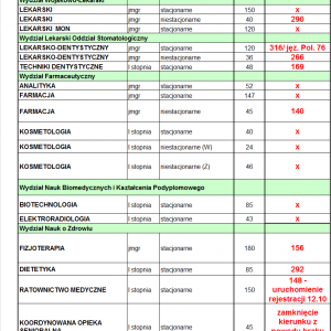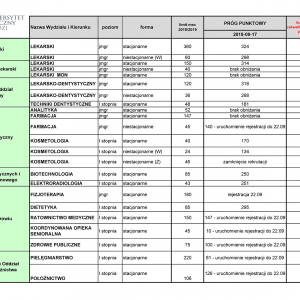 Lekarski (stacjonarne) – 320/84 Lekarski (niestacjonarne) – 290 Lekarski (Wojskowo – Lekarski, niestacjonarne) – 290 Lekarsko-dentystyczny (stacjonarne) – 316/76 lekarsko-dentystyczny (niestacjonarne) – 266 Techniki … Continue reading OGŁASZAMY NOWE PROGI!