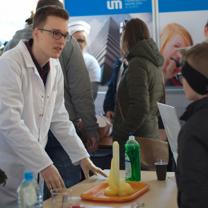 - Studentów należących do Koła Chemików przy Zakładzie Chemii Bionieorganicznej oraz ich opiekuna Panią Doktor Małgorzatę Fabijańską, którzy pokazali cykl eksperymentów z udziałem ciekłego azotu i nie tylko;